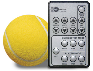 La Shotmaker viene de fábrica con un control remoto inalámbrico de dos funciones. El botón ""Ball feed"" enciende y detiene el lanzamiento de pelotas. El boton ""Oscillator"" inicia y detiene la secuencia de disparos. Cuando la secuencia de disparos es detenida, la Shotmaker lanza las pelotas solamente a la posición donde el programa fue detenido.