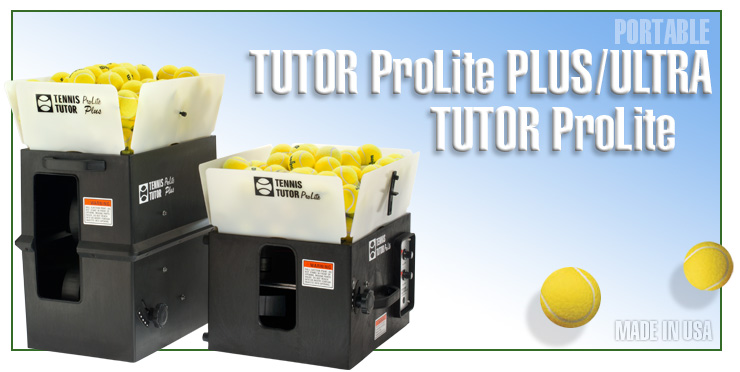 La Tennis Tutor Prolite es una máquina lanza pelotas de características profesionales, aún cuando sólo tenga 30 cms de alto y pese menos de 14 kilos. El modelo Prolite Plus añade mayor potencia de lanzamientos, mayor autonomía de batería y la opción de efecto liftado "topspin" en los lanzamientos. El modelo Prolite Ultra incluye efectos topspin y underspin (slice) graduables, control electrónico de la elevación, oscilación a 2 líneas, cuatro lanzamientos pre-establecidos y 2 drills pre-configurados. ¡Y todo esto, manteniendo su portabilidad, con menos de 16 kilos!